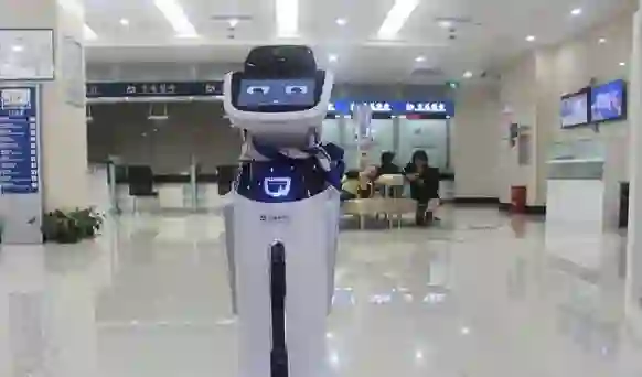 此外,机器人还具有唱歌、朗诵、讲笑话等功能,比如对客户的问题:“我们合个影可以吗?”“来吧,我等着,一定要用美图秀秀哦!”,方式新颖有趣,在提高业务办理效率的同时,也给客户提供了良好的体验。