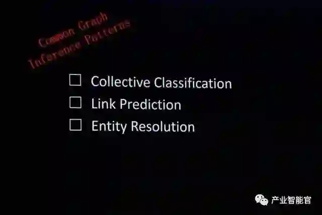 例如为缺失标签的节点做标签预测的协同分类(collective classification),给出数据里隐含的连接节点的边的连接预测(link predictions),以及判断两个节点是否为同一实体并进行合并的实体分辨(entity resolution)。