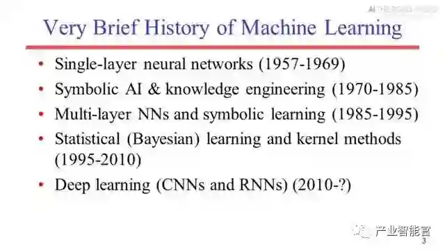 首先Raymond教授简单回顾了机器学习的历史,从单层神经网络到符号AI和知识工程,到多层神经网络和符号学习,到统计学习和核方法,再到近年来的深度学习。