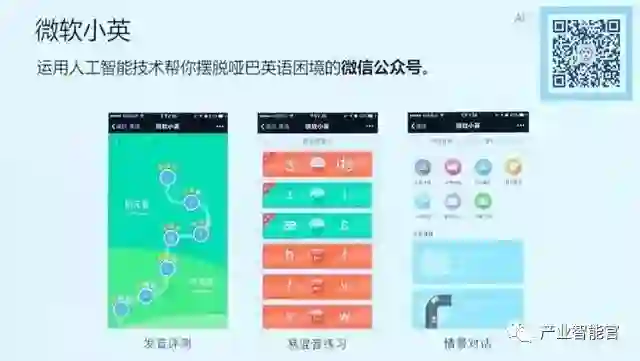首先,洪小文博士介绍了微软小英。它可以帮助初学者快速建立日常英语沟通能力,帮助英语学习者完善发音,熟练口语。微软小英融合了语音识别、语音合成、自然语言理解、机器翻译、机器学习、大数据分析等人工智能前沿技术。