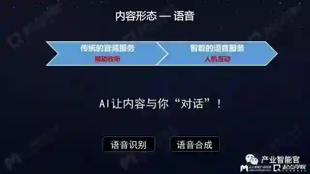 最近的一个重要变化在去年下半年,AI语音/音箱的出现,让语音内容又发生了一个“质”的变化 —— 内容和人之间可以相互沟通。