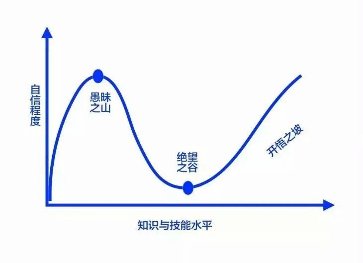 人们年轻的时候很容易自负,觉得自己具有独一无二的能力和眼光,那些没有走下愚昧之巅的,可能一辈子都会这样自我感觉良好。