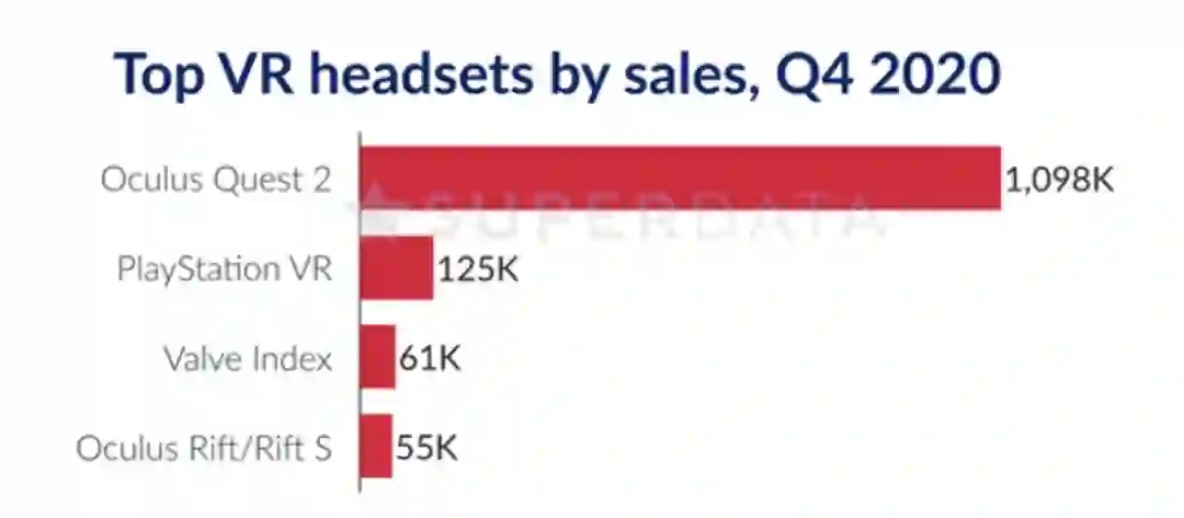 到了2020年,Meta推出了第二代独立虚拟现实头盔Oculus Quest 2,攻克一直以来大家几乎认为不可能突破的瓶颈,销量实现赶超。