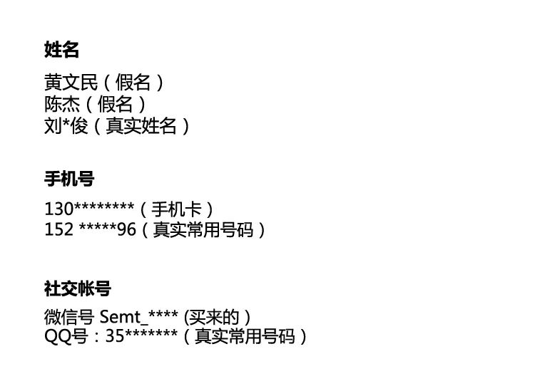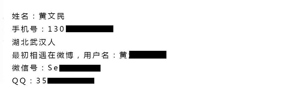 第一轮调查后我知道了他的手机号,姓名和地区,再次整理并且筛选假信息,得到下图。