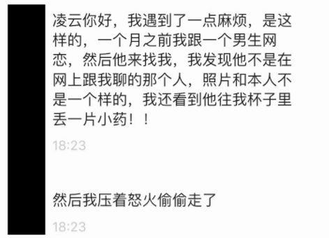 有个叫李琴的姑娘连续几天都在给我发信息——在网上谈了一男朋友,聊了一个多月他来见她,发现不是同一个人,还差点被下药。