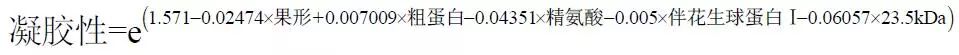 式中,y₁ 为蛋白质凝胶性变为正态分布的值;y 为蛋白质凝胶性的原始值。