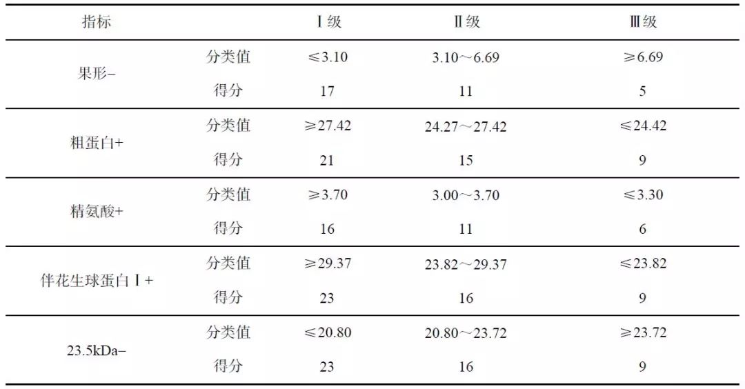 1. 适宜加工凝胶型蛋白质花生品质评价标准(理论分析)