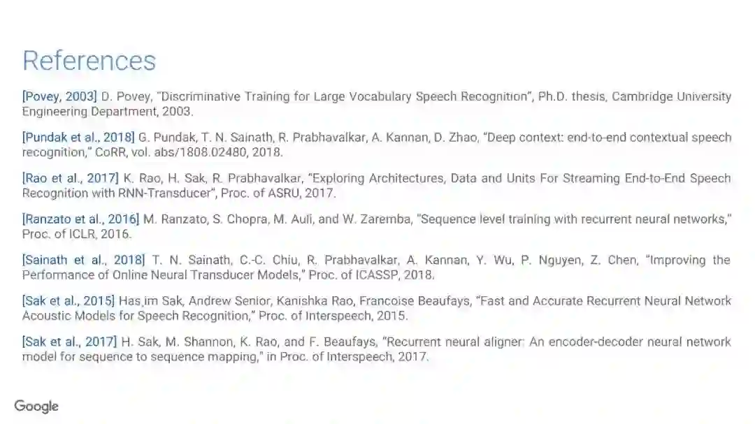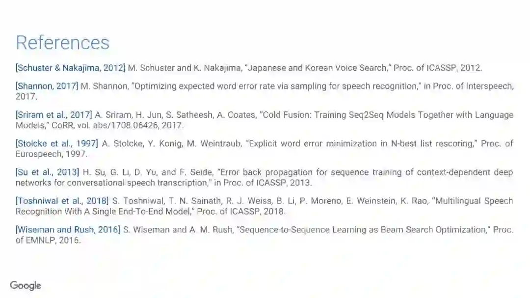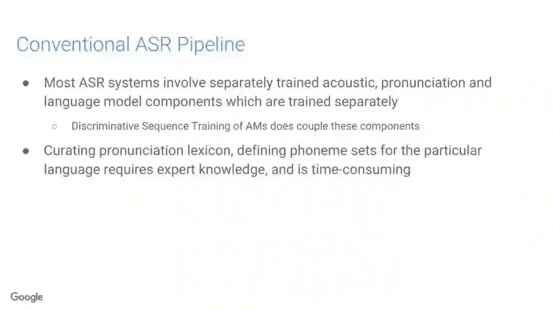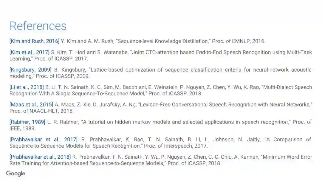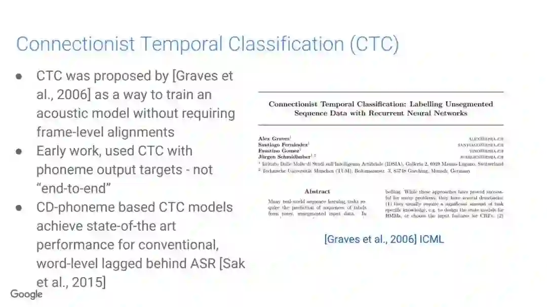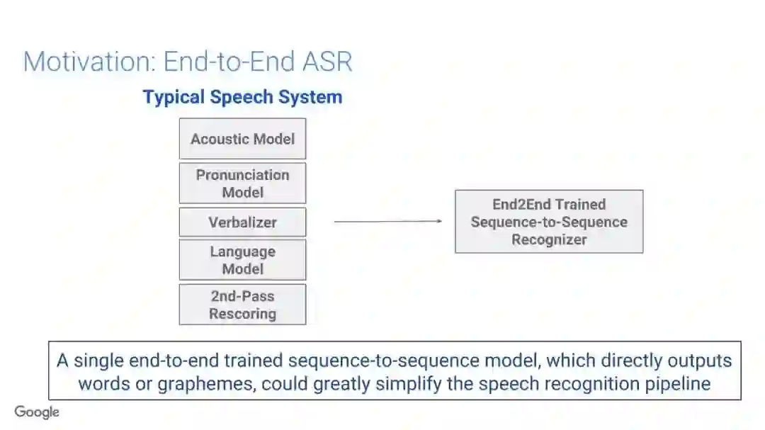 【导读】Interspeech是由国际语音通信协会ISCA(International Speech Communication Association)组织的语音研究领域的顶级会议之一,是全球最大的综合性语音信号处理领域的科技盛会,该会议每年举办一次,每次都会吸引全球语音信号领域以及人工智能领域知名学者、企业以及研发人员参加。本期内容为大家整理了google研究人员Rohit Prabhavalkar在大会上的端到端语音识别模型教程,希望对大家有所帮助。