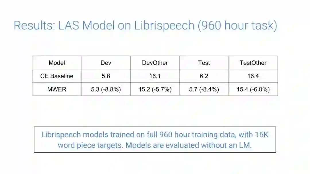 在传统的自动语音识别系统中,这些构件是在不同数据集上独立训练的,并且有一些独立的假设以方便处理。而在过去的几年里,人们对开发端到端的语音识别系统越来越感兴趣,这些系统试图在单个系统中完成多个构件的工作。例如基于attention的模型、循环神经传感器、循环神经校准器、目标词时序分类等。这些模型的共同特点在于,它们组成在一个单一的神经网络上,当接收一段语音信息后,直接输出一组图形或文字的概率分布。随着研究的逐渐深入,这种端到端的模型可以超过传统自动语音识别系统的性能。
