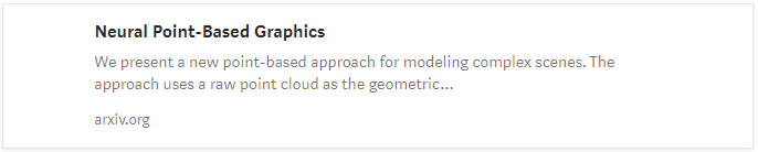 在本文中,研究者提出了一种新的基于点的复杂场景建模方法。该方法使用原始点云作为场景的几何表征,并且利用能够编码局部几何结构和外观的可学习神经描述符来增大每个点。