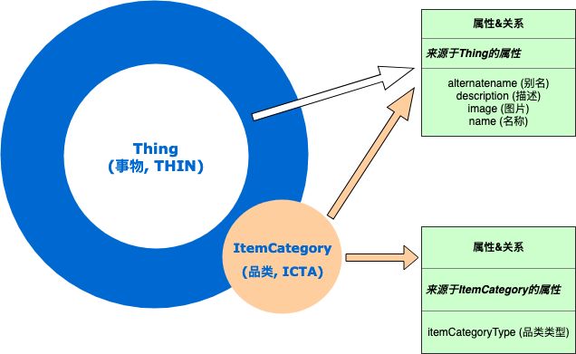 品类类:品类类是事物类的直接子类,将直接继承事物类的所有属性和关系。与此同时,品类类含有自己特有的属性“品类类型”。