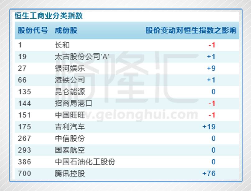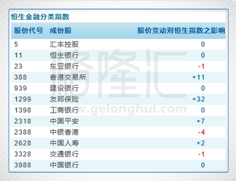 从个股表面看,金融股中友邦保险(01299.HK)和港交所(00388.HK)对恒指分别贡献了32和11点,而腾讯(00700.HK)和吉利汽车(00175.HK)分别对恒指贡献了76和19点。