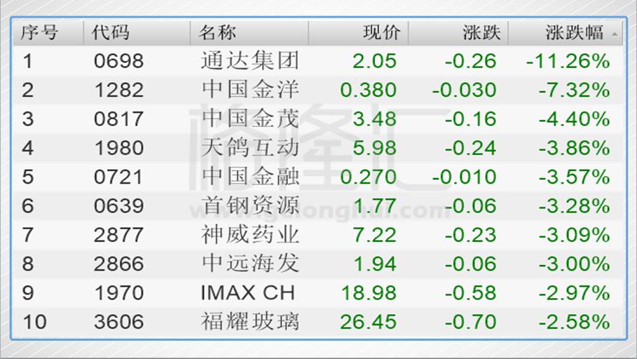 今日港股通标的中跌幅前五的个股是通达集团(00698.HK)、中国金洋(01282.HK)、中国金茂(00817.HK)、天鸽互动(01980.HK)、中国金融国际(00721.HK)。