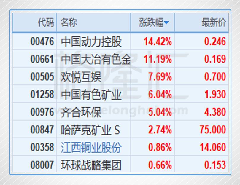 4.3 铜价持续走高 铜股普涨 中国动力控股(00476.HK)大涨14.42%
