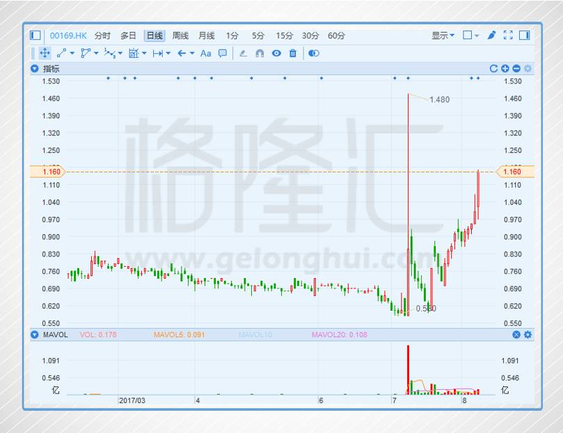 该股曾在7月10日因万达出售国内文旅及酒店业务而一度在盘中出现乌龙大涨155%的走势(最终收涨46%),而今日盘中股价已超过当日的收盘价,且重回2015年12月份水平。