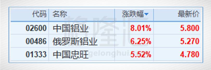 4.6 沪铝价格创逾4年新高 中国铝业(02600.HK)领涨铝板块