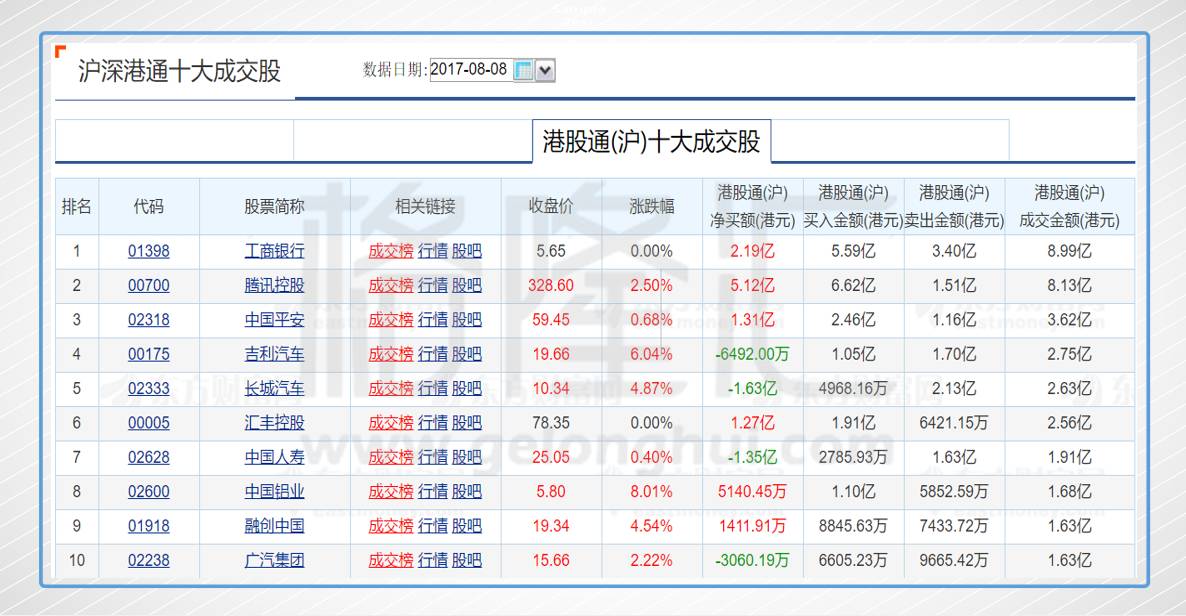 今日港股通(沪)前十大成交个股是工商银行、腾讯控股、中国平安、吉利汽车、长城汽车、汇丰控股、中国人寿、中国铝业、融创中国、广汽集团。其中净流入最多的个股是腾讯,净流入5.12亿;净流出最多的个股是长城汽车,净流出1.63亿。