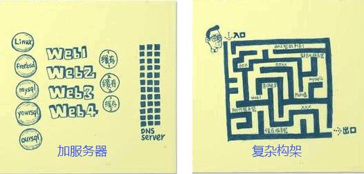 早期的每一个网站背后,都有一台服务器。后来,上网的群众越来越多,服务器开始吃不消了,为了能让网站正常运行,不得不用更好更多的服务器。