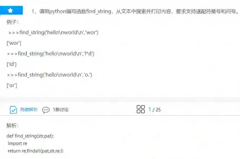 1、请用python编写函数find_string,