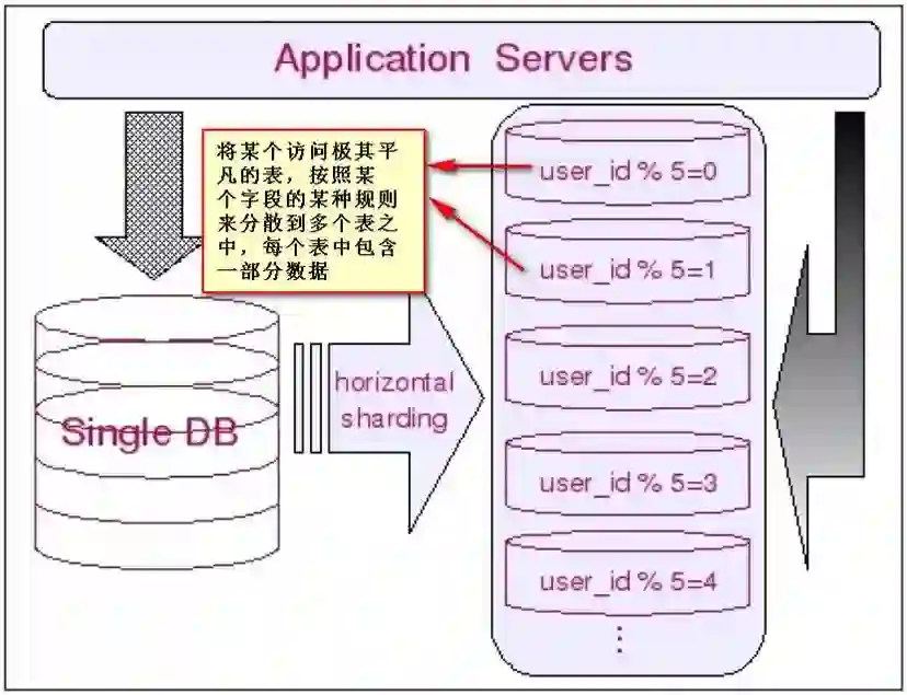 水平切分于垂直切分相比,相对来说稍微复杂一些。因为要将同一个表中的不同数据拆分到不同的数据库中,对于应用程序来说,拆分规则本身就较根据表名来拆分更为复杂,后期的数据维护也会更为复杂一些。