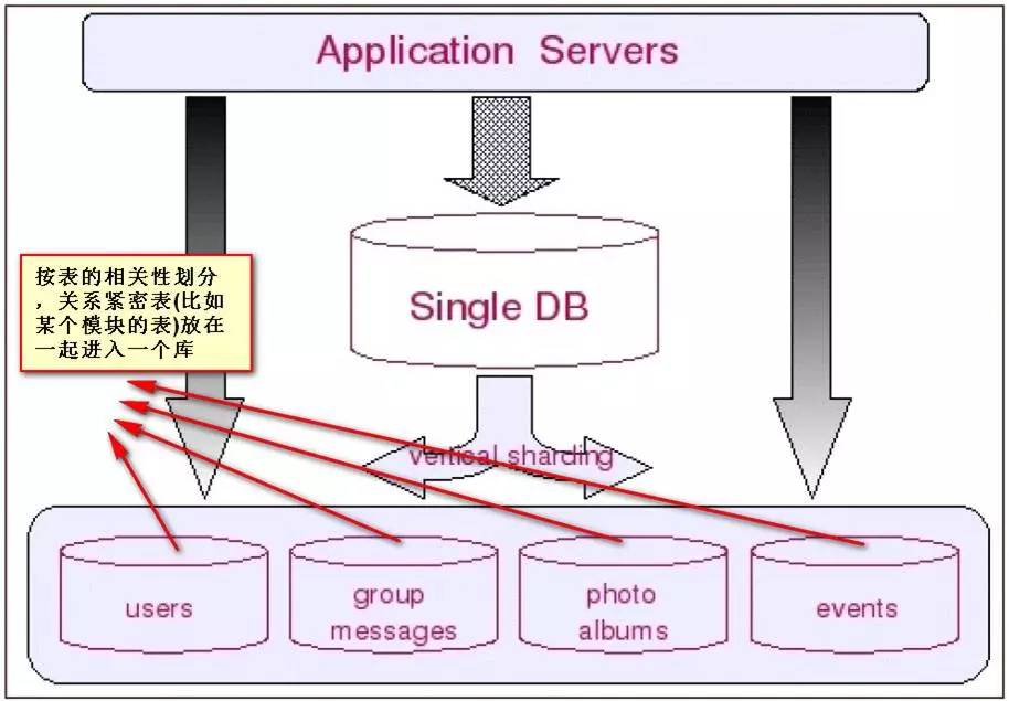 垂直切分的最大特点就是规则简单,实施也更为方便,尤其适合各业务之间的耦合度非常低,相互影响很小,业务逻辑非常清晰的系统。在这种系统中,可以很容易做到将不同业务模块所使用的表分拆到不同的数据库中。根据不同的表来进行拆分,对应用程序的影响也更小,拆分规则也会比较简单清晰。(这也就是所谓的”share nothing”)。