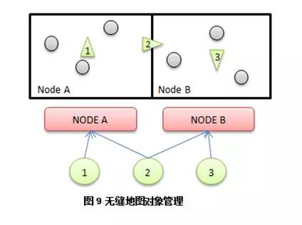 还是将地图按照标准尺寸均匀切割成静态的网格,每个格子由一个具体的Node负责,但是根据负载情况,能够实时的迁移到其他 Node上。在迁移分为三个阶段:准备,切换,完成。三个状态由Node Master负责维护。准备阶段新的 Node开始同步老 Node上面该网格的数据,完成后告诉NM;NM确认OK后同时通知新旧 Node完成切换。完成切换后,如果 Obj服务器还在和老的 Node进行通信,老的 Node将会对它进行纠正,得到纠正的 OBJ将修正自己的状态,和新的 Node进行通信。