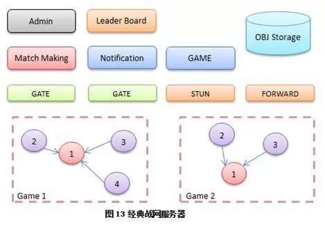 经典战网服务端和 RPG游戏有两个区别:RPG是分区分服的,北京区的用户和广州区的用户老死不相往来。而战网,虽然每局游戏一般都是 8人以内,但全国只有一套服务器,所有的玩家都可以在一起游戏,而玩家和玩家之使用 P2P的方式连接在一起,组成一局游戏:
