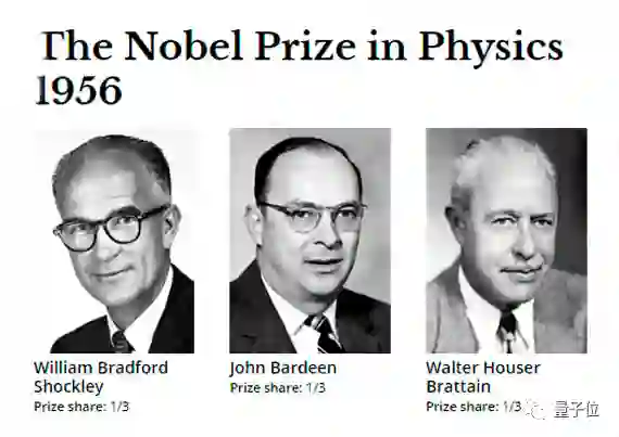 晶体管的发明在人类历史上势必成为标志性事件,1956年的诺贝尔奖颁给了前面所说的三人,让我们重新回顾一下他们的名字: