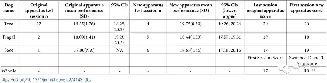 实验设置,每20次测试记为一轮,两轮测试中狗狗都能选对16次,才会继续实验。