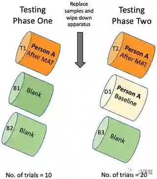 测试结束后,会用一块纱布擦一下志愿者的后颈,然后将它装到一个小瓶里,志愿者再对着瓶子呼三口气,即为收集好了一个样本。