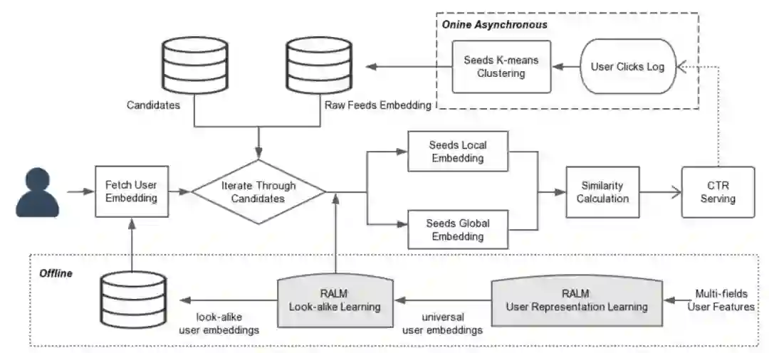 由于RALM基于相似性计算,并且只通过获取高阶(high-level)的嵌入作为输入,在线look-alike服务是简单高效的。