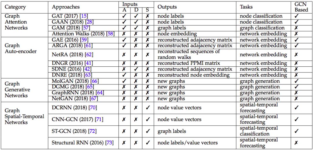 GCN 类别汇总,来源:论文 A Comprehensive Survey on Graph Neural Networks