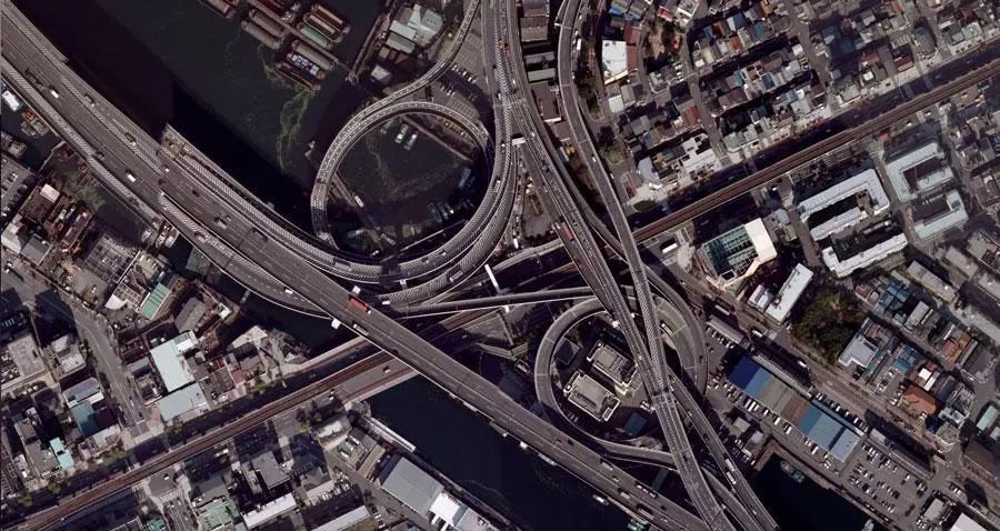 日本大阪天保山立交桥,你能确定这座立交桥的中心位置吗?