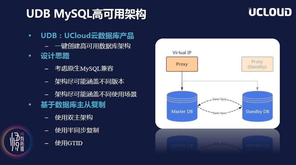除此以外,他还提出了UCloud云数据库产品UDB。据了解,UDB采用经典的主从模式设计,为了提高数据一致性,采用了半同步的模式,用来保证可靠性。