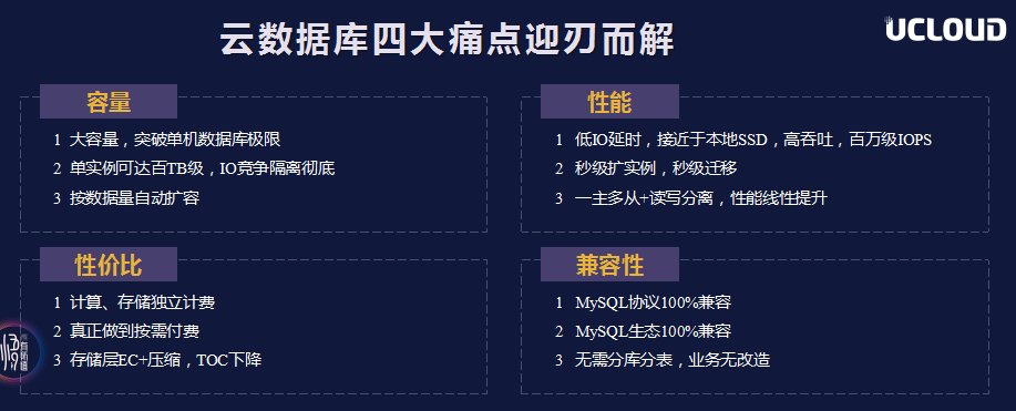 众所周知,性能和容量一直是数据库关注的核心议题。尤其在公有云环境下更是挑战巨大,而UCloud云数据库团队一直在尝试如何优雅地解决这个难题。