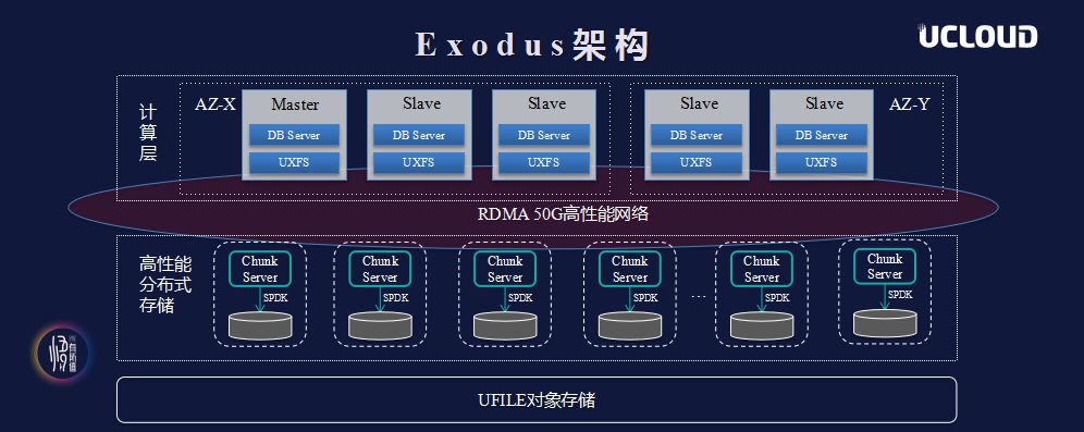在产品层面,UCloud Exodus就是这样一款应时而生的云数据库。罗成对表示,Exodus支持最主流的开源数据库MySQL,协议完全兼容,通过融合最新软硬件技术,包括RDMA、Skylake、SPDK、用户态文件系统等来解锁新的能力。