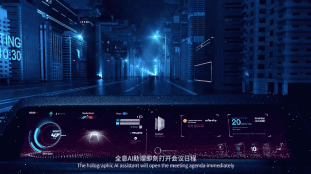 在私人模式下,全息AI助理可以打开会议日程,自动计算到达时间,还能完成一系列的预约工作。