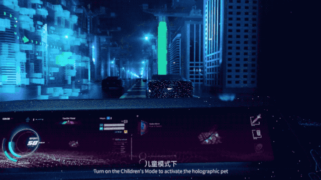 在儿童模式下,不会再有繁杂的事务、信息提醒,智能汽车将变成孩子们的游乐场,还有全息语音宠物功陪伴。