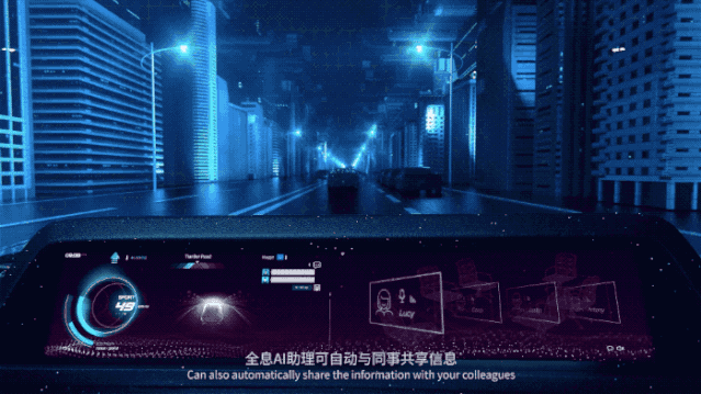 还可以自动与同事共享信息,在车内就能高效完成视频会议。