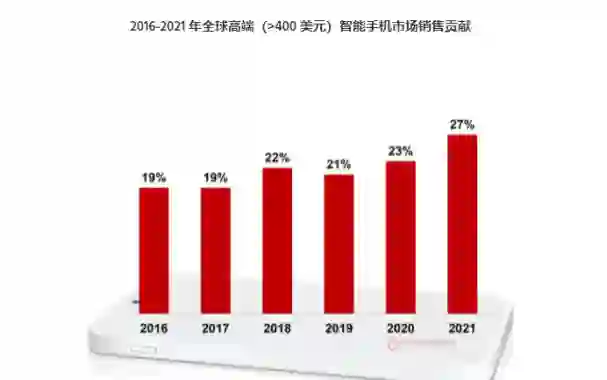 市调机构 Counterpoint 近日公布了 2021 年全球高端手机市场报告,报告中统计机型的平均售价超 400 美元。报告显示,2021 年全球高端智能手机的销售额创历史新高,较去年同期增长 24%,远超手机市场 7% 的增速。另外,高端智能手机占据了全球智能手机销量 27% 的份额。