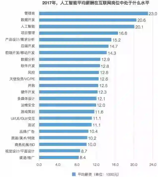 图1 2017年人工智能平均薪资在互联网岗位中占据的地位图