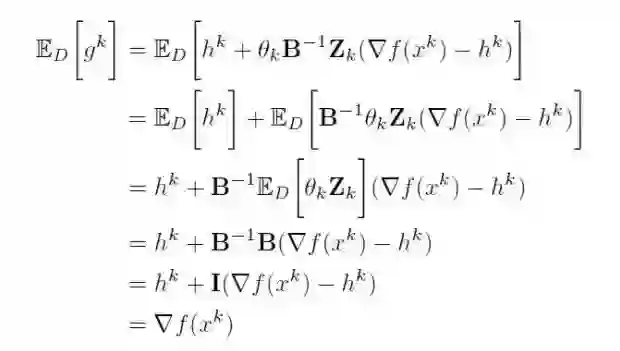 其中,θ_k=θ(S_k)且 E_D[ θ_k *Z*_k ] = *B*. *g*^k 是梯度的无偏估计,它将在算法中被使用。为了说明这一点,我将具体的推导过程附在下面: