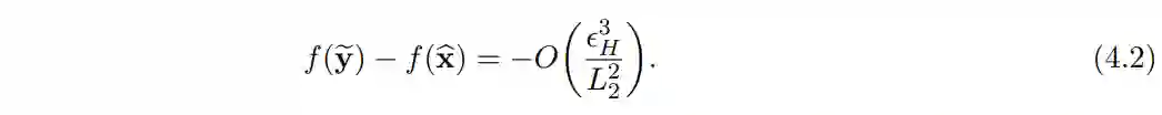 在第一步中,算法使用一阶更新来查找 ε 一阶驻点(FOSP)。ε 一阶驻点是一个满足条件(4)的点 x*,在第二步中,如果它是一个鞍点,算法利用 f 的二阶信息跳出该驻点。