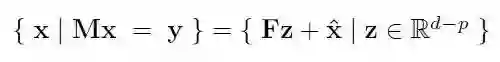 在这里,我们可以选择 Mx=y 的任意一个特解作为 x^,而 F 则是值域在 M 的零空间中的任意矩阵。因此(1)中的问题可以被归结为: