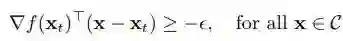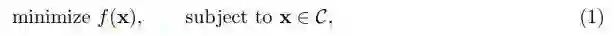 其中,f 是在一个凸集上平滑的非凸函数,x∈R^d,C 是一个封闭的凸集,而实数集上的 f:R^d 是 C 上的一个二次连续函数。