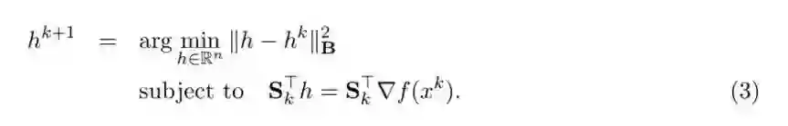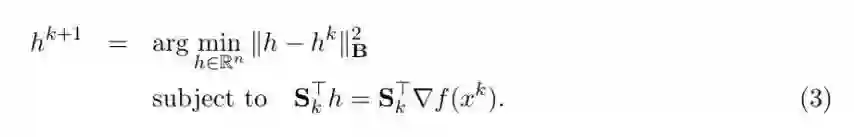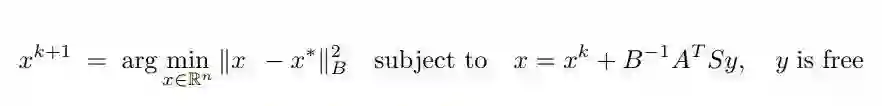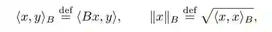 其中,S 是在每一次迭代独立于预先指定的分布绘制而来,B 是一个正定矩阵。更进一步而言,B 被用于定义 B 的内积和引导出如下 N-norm: