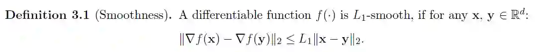 正如上面所示的定义,Lipschitz 常数 L1 和 L2 分别取决于▽ f(x) 和 ▽ ^2 f(x)。因此,这些常数可能对于一个函数来说很小而对于另一个函数很大。从定义 3.1 可以看出,如果 L1 很小,那么 f(x) 在 x 的变化很小时可能也只有很小的变化,而如果 L1 很大,那么 f(x) 在 x 变换很小时也可能有很大的变化。