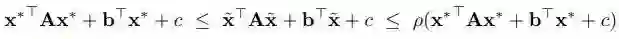 其中,A∈R^d 是一个对称矩阵,b∈R^d 是一个向量,而 c 是一个标量。在这里,假设有一个可行解 x*,和一个属于 (0,1] 常数因子 ρ,作者将问题的解定义如下: