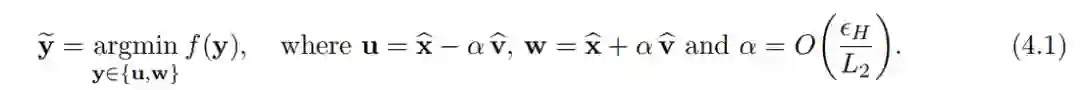 其中,f(y) 是目标函数,假设其为 L1 Lipschitz 和 L2 Lipschitz。此外,α 是步长,其数量级为 O(ε _H/ L2)(可以认为它是步长的大小)。