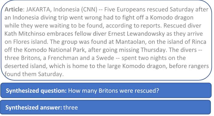 目前,大多数最先进的机器阅读系统都是建立在监督训练数据的基础之上,这些模型已经在样例上进行过端到端的训练。训练样例不仅包括文章,还包括与文章相关的手动标签的问题和问题相应的答案。